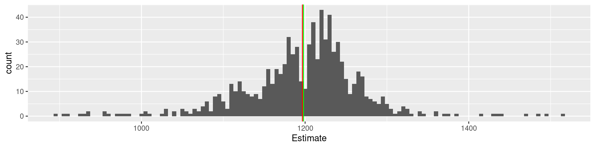 Variance <-var(galton$Estimate)*(nrow(galton)-1)/nrow(galton)# Note, we had to correct for the divisor (n-1) in the classical statistical definition# to get the sample variance instead of the estimate for the population varianceVariance