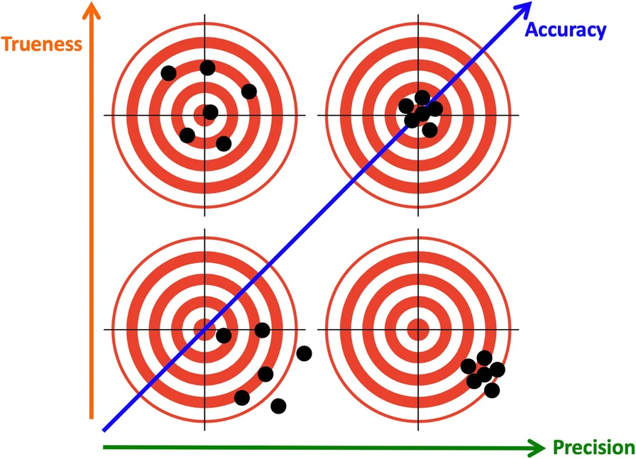 According to ISO 5725-1 Standard: Accuracy (trueness and precision) of measurement methods and results - Part 1: General principles and definitions. there are two dimension of accuracy of numerical measurement.