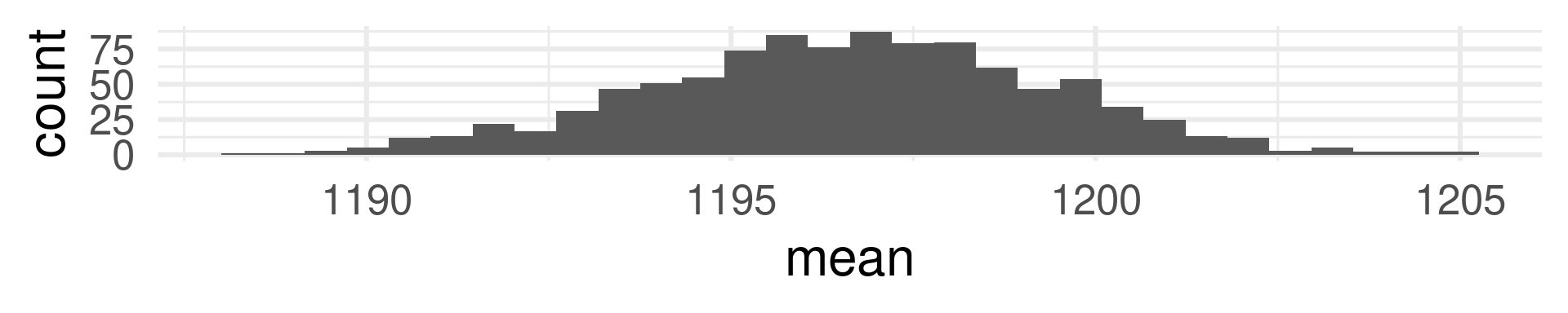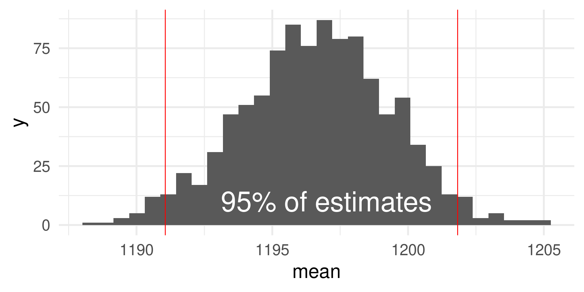 The standard error of the mean can also be estimated directly from the original sample \(x\) as \(\frac{\text{sd}(x)}{\sqrt{n}}\) where \(n\) is the sample size.